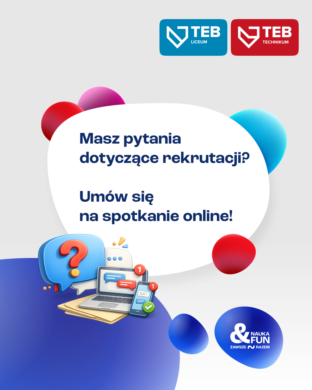 Wiemy, jak cenny jest Wasz czas. Wybór szkoły średniej to jedna z najważniejszych decyzji, a dzielące nas kilometry czy napięty grafik nie powinny być przeszkodą w uzyskaniu rzetelnych informacji. Dlatego w szkołach średnich TEB Edukacja w Opolu uruchamiamy nową usługę, aby pomóc rodzicom w wyborze najlepszych kierunków dopasowanych do zainteresowań i pasji przyszłych uczniów.