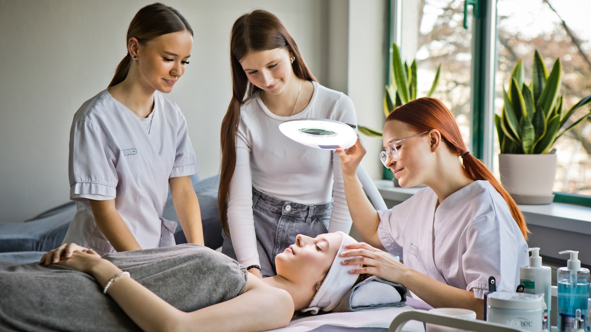 Zajęcia odbywają się w nowoczesnych, w pełni wyposażonych pracowniach kosmetycznych z profesjonalnym sprzętem do nauki zawodów beauty.