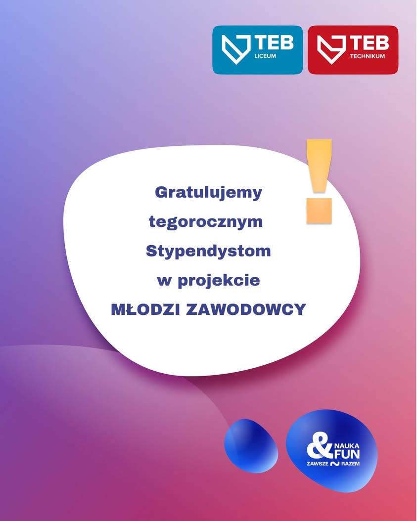 Maturalni.com to liderzy nowoczesnej edukacji w Polsce - laureaci nagród Złoty Wilk i EdCamp, twórcy największej platformy przygotowującej młodzież do matury i egzaminu ósmoklasisty. Wspierają uczniów w całym kraju, budując społeczność ponad 300 000 osób rocznie i organizując największe eventy edukacyjne, takie jak Turbo Weekendy. Ich zespół tworzą nauczyciele nagradzani najważniejszymi wyróżnieniami edukacyjnymi, autorzy podręczników i egzaminatorzy CKE. Wśród uczniów Maturalnych znaleźli się także znani młodzi Polacy – m.in. Roksana Węgiel i Kacperek z Rodzinki.pl. Dzięki współpracy z TEB Edukacja, doświadczenie Maturalnych wesprze uczniów szkół średnich, oferując im edukację nowoczesną, skuteczną i przyjazną uczniowi.